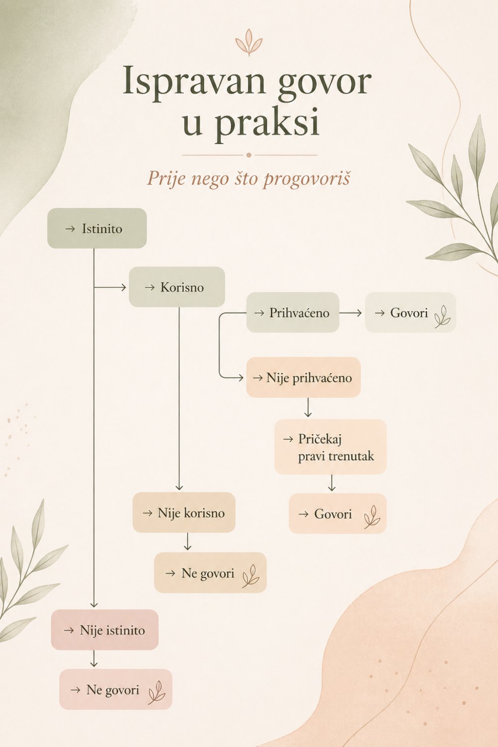 Ispravan govor odnosi se na svjesnu i odgovornu komunikaciju koja je istinita, korisna i izgovorena u pravom trenutku. Riječi koje biramo imaju stvaran utjecaj na naše odnose, unutarnje stanje i način na koji doživljavamo svijet. Razvijanje svjesnog govora ne znači savršenstvo, nego pažnju, prisutnost i razumijevanje kada treba govoriti, a kada šutnja donosi više mira.