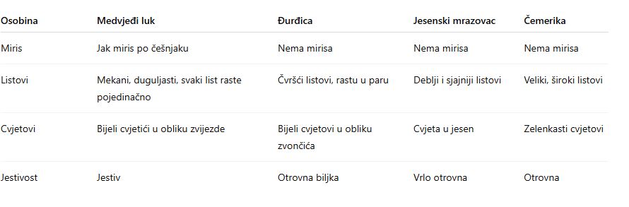 Najveći problem kod berbe medvjeđeg luka je to što postoje biljke koje na prvi pogled izgledaju slično, ali su otrovne. Zato je važno znati njihove razlike.
